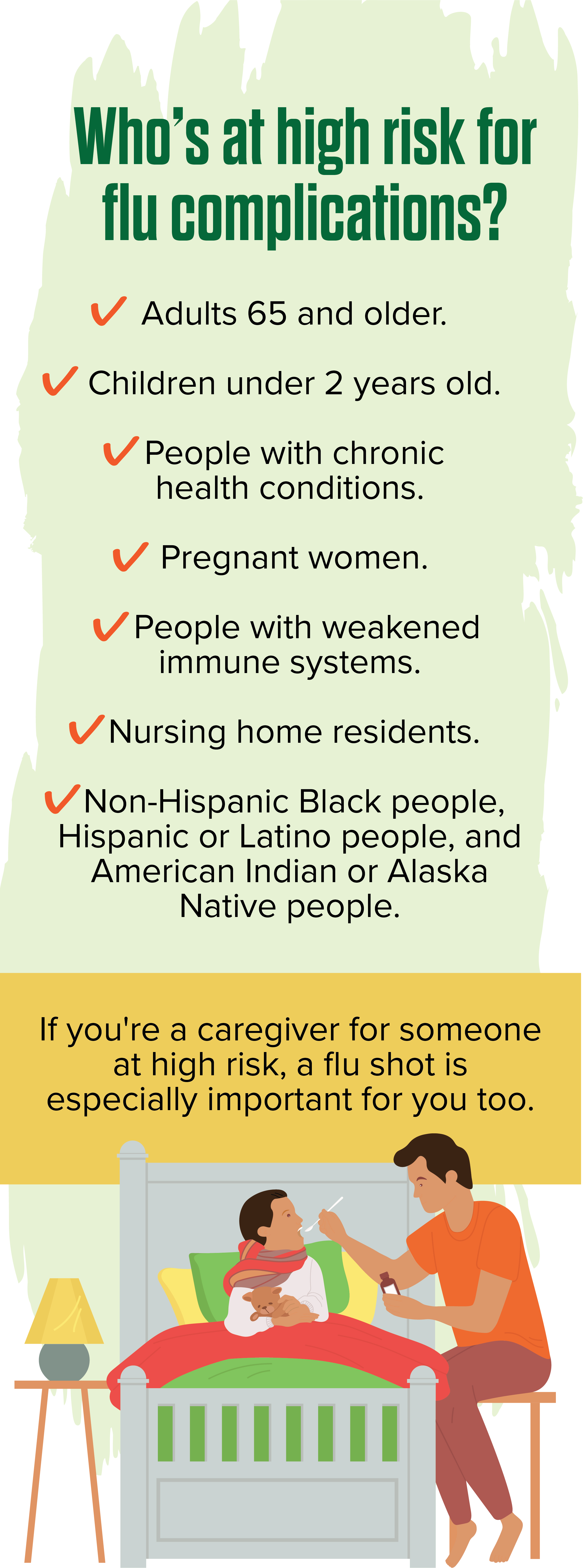 The flu can lead to missed work or school, hospitalization and even death. Almost everyone 6 months and older needs a flu shot every year—especially people who are more likely to get seriously ill if they catch the flu.